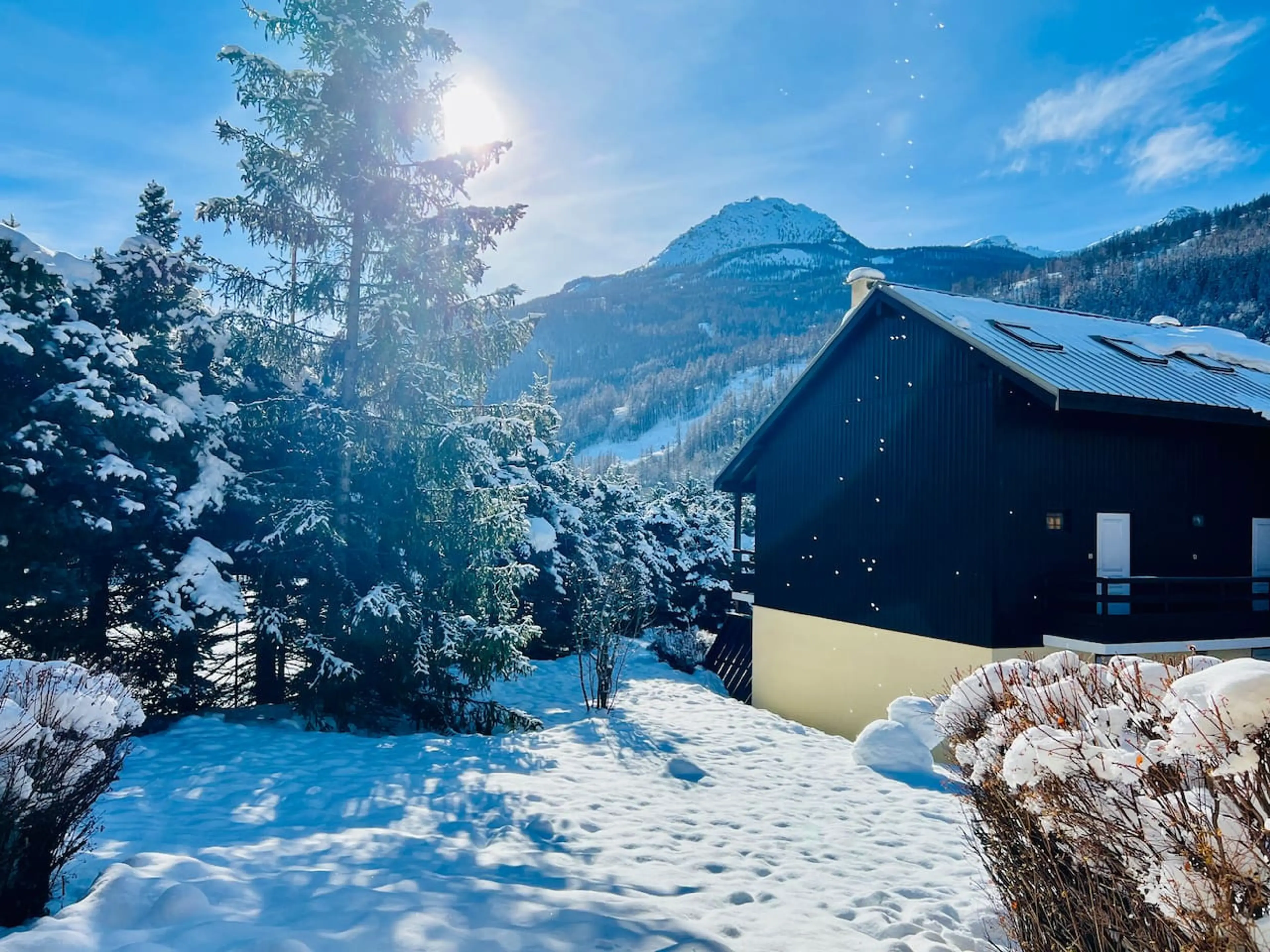 Studio spacieux et tout équipé de 25m2 pour 4 personnes à Chantemerle avec jardin privatif et terrasse plein sud Idéal pour couple et deux enfants (un lit double et lits superposés) Vue exceptionnelle sur la montagne Proche des pistes de ski de Serre Chevalier (600m plat) Résidence calme, légèremen...